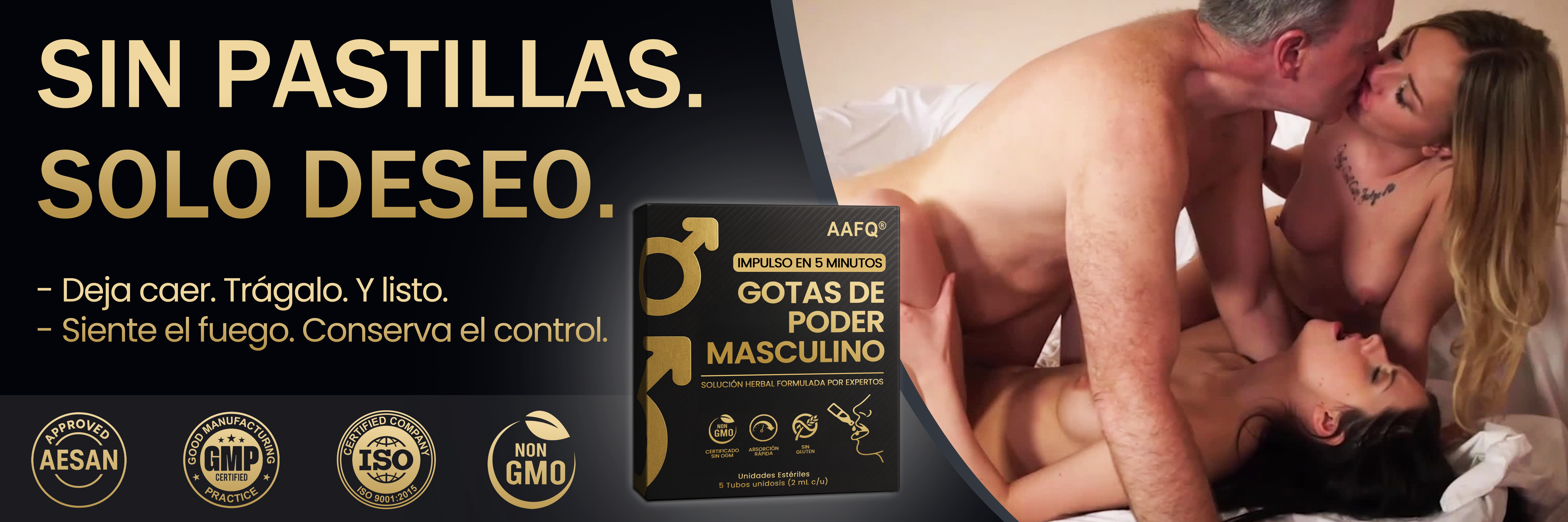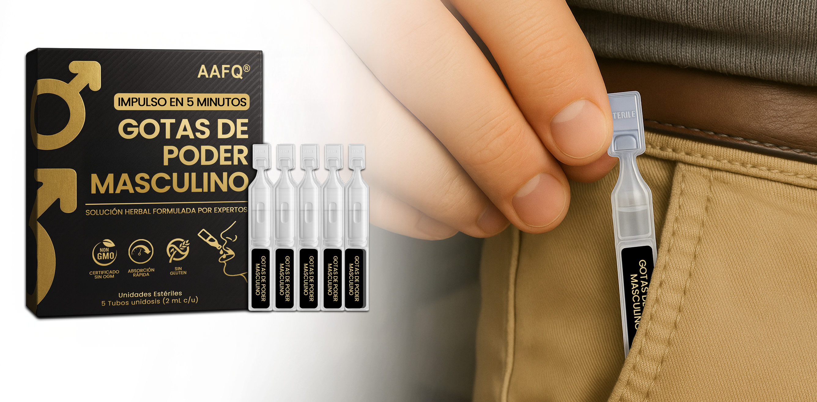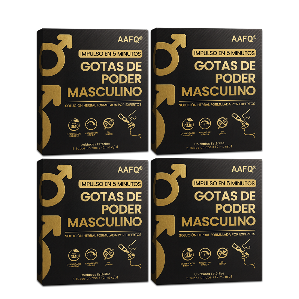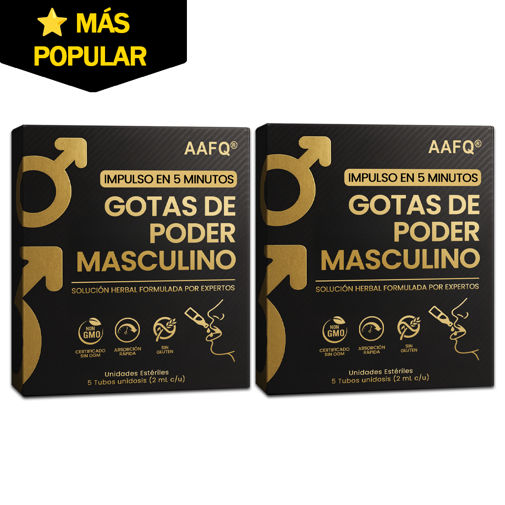 Conoce las nuevas y mejoradas Gotas AAFQ® Male Power. Hemos potenciado nuestra fórmula ancestral con la 'súper-hierba' Tongkat Ali, clínicamente es-tudiada, y la hemos empacado en revolucionarios sobres monodosis. Abre. Bebe. Transfórmate. Sin medir. Sin desorden. Sin adivinar. Solo puro poder masculino respaldado por la ciencia en tu bolsillo.